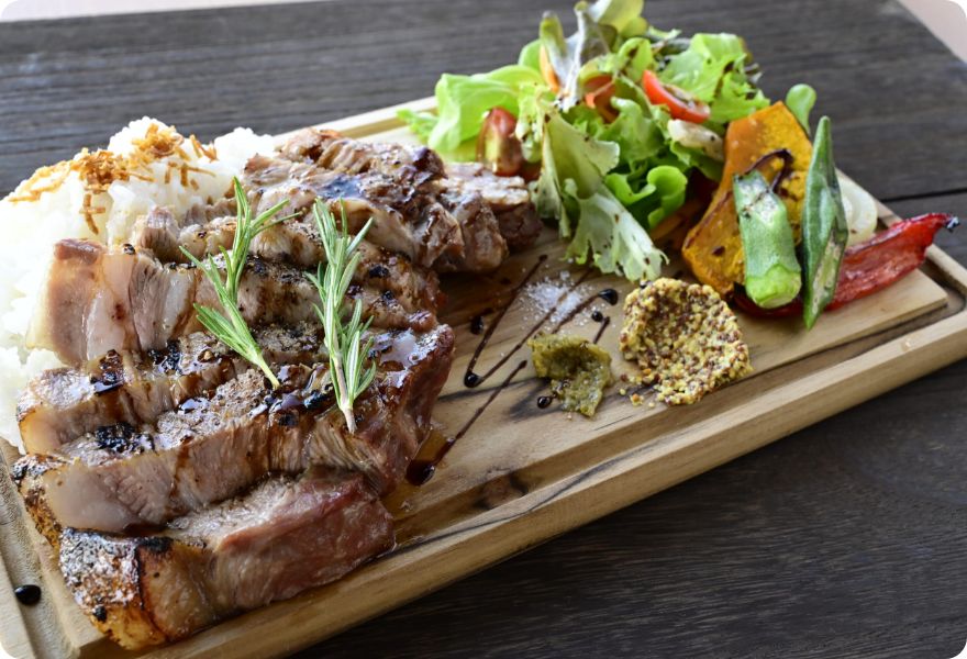 うきはのブランド豚!耳納豚の肩ロースをじっくりと焼き上げます。※20〜30分程お時間をいただきます。