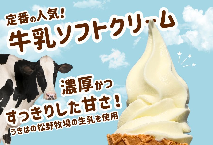 うきはの松野牧場さんの生乳を使用した濃厚かつすっきりとした甘さが魅力のソフトクリームです!