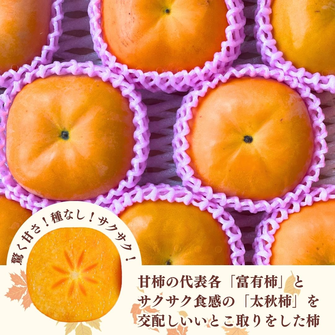 サクサク食感で人気の「太秋柿」と、コクのある甘みが美味しい「富有柿」を交配し、いいとこどりした柿。